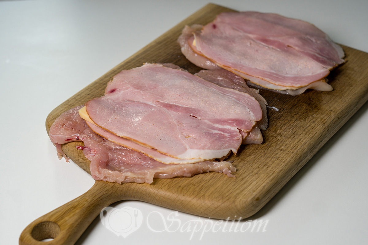 Представьте: сочная куриная грудка, которая решила сбежать из мира диетической скуки, прихватив с собой двойной заряд расплавленного сыра и хрустящую шпионку-ветчину! Но её поймали, запанировали в золотистые сухарики и обжарили до хруста – теперь это не просто курица, а Кордон Блю – шедевр кулинарного абсурда!