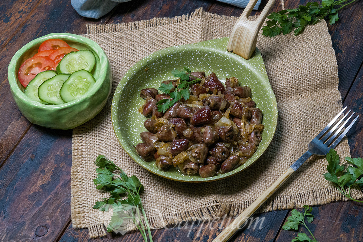 Куриные сердечки, жареные с луком – "маленькие герои большой вкуснятины!"