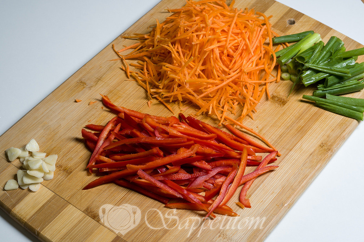— Устроить фейерверк из овощей: перец, морковь, зеленый лук — всё летит в танец на раскалённой поверхности.